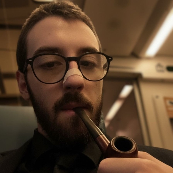 Our dear intern. He translates texts into three languages, Catalan, Spanish and English. He has done more than one "voice over".